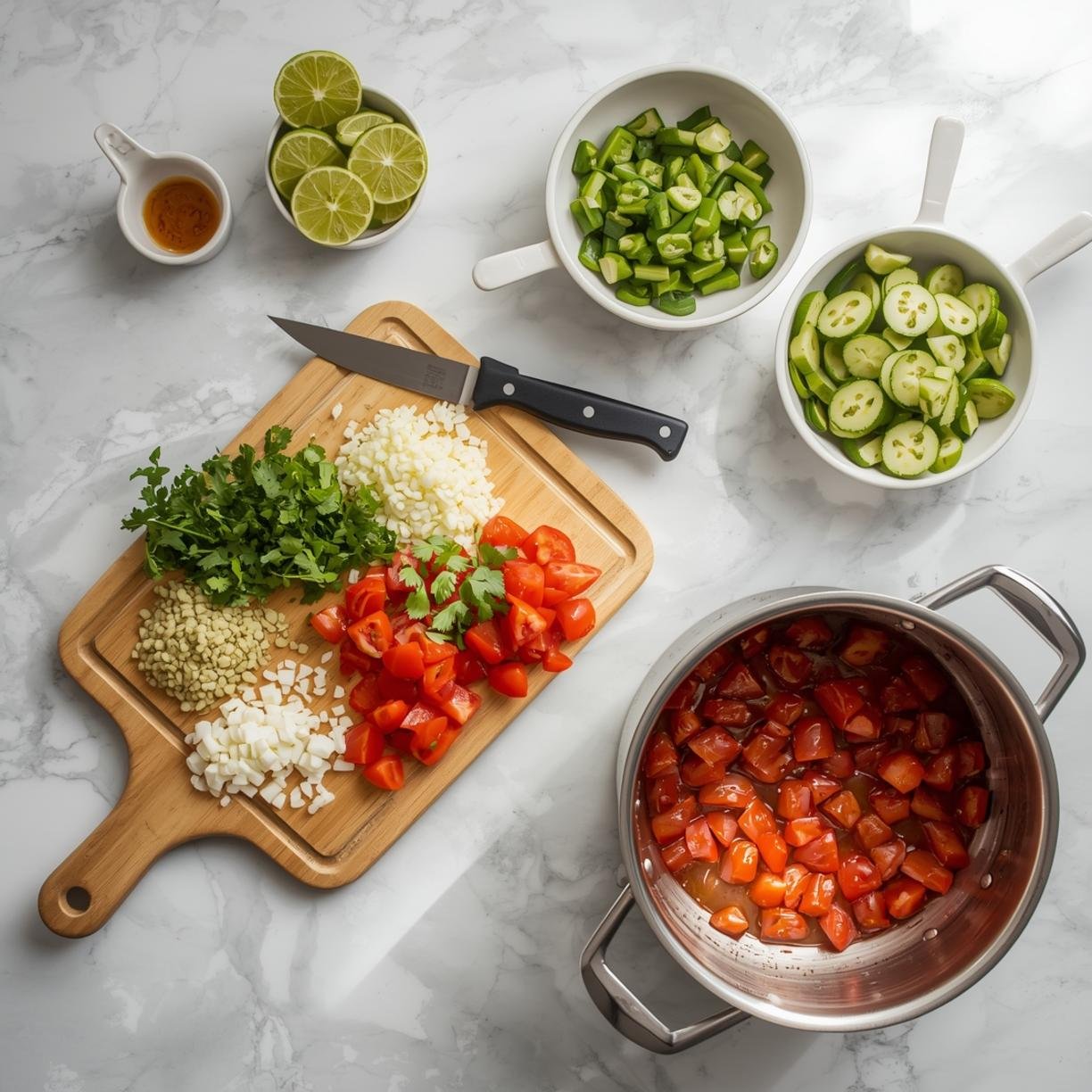 1. Prep the tomatoes: Rinse tomatoes thoroughly, remove cores, and dice into small, uniform cubes (about ¼-inch pieces). For less watery pico de gallo, you can remove the seeds and gel.