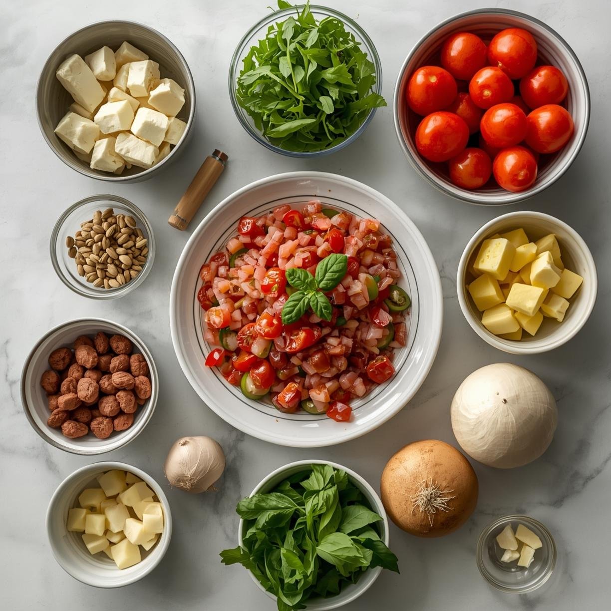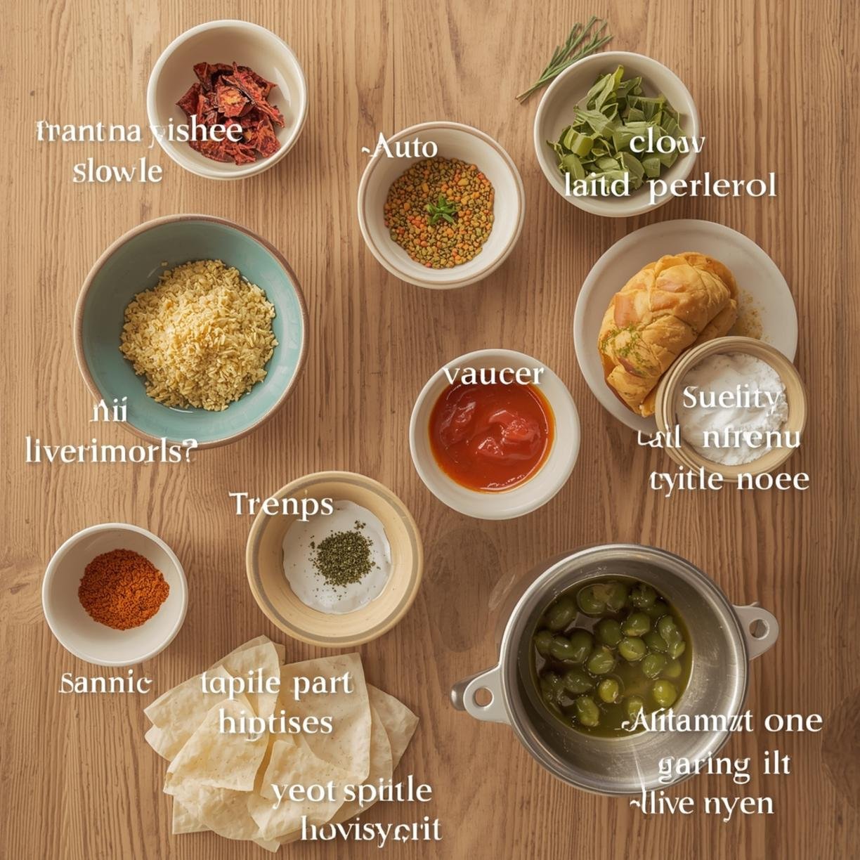 – Small bowls for olives and wet ingredients